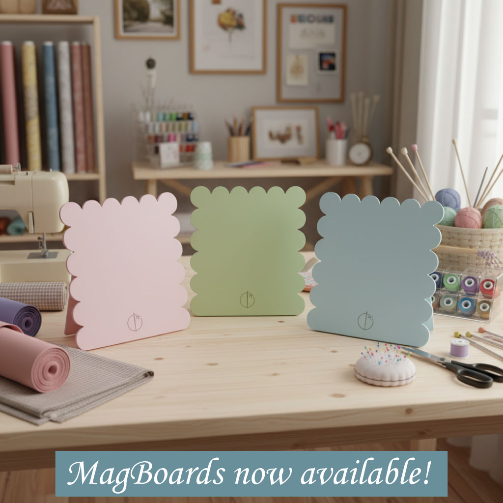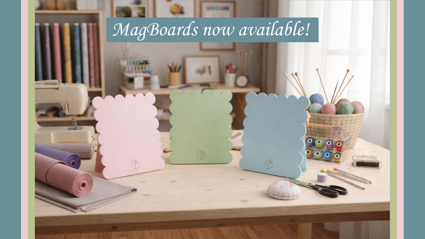 Set of colorful scissors in a rainbow pattern with packaging labeled 'Rainbow Super Snips' on a crafting background.